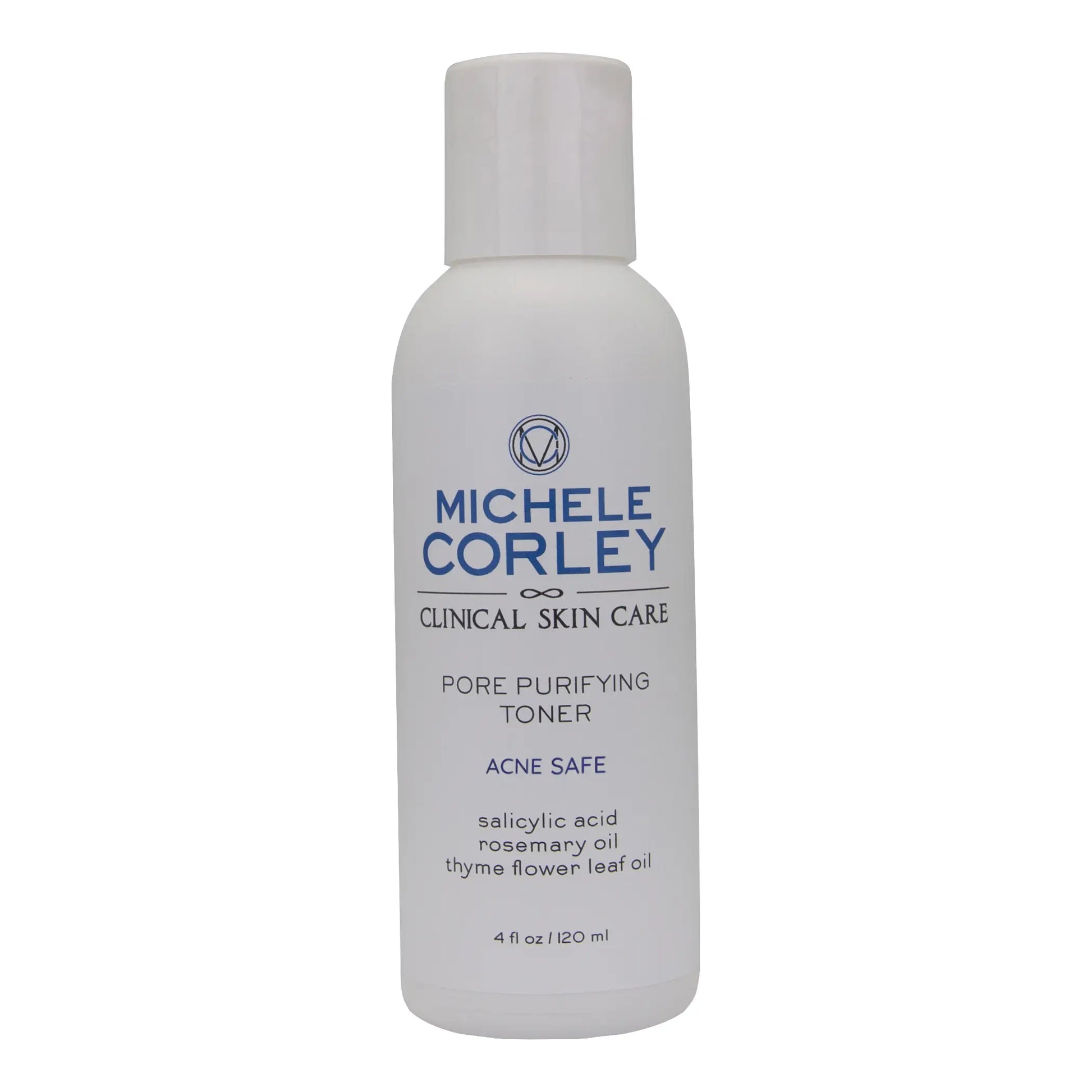 The Michele Corley Pore Purifying Toner is a clarifying, alcohol-free toner designed to remove excess oil, minimize the look of pores, and restore skin balance. Formulated with salicylic acid, witch hazel, and soothing botanical extracts, it refreshes and refines skin without drying or stripping.