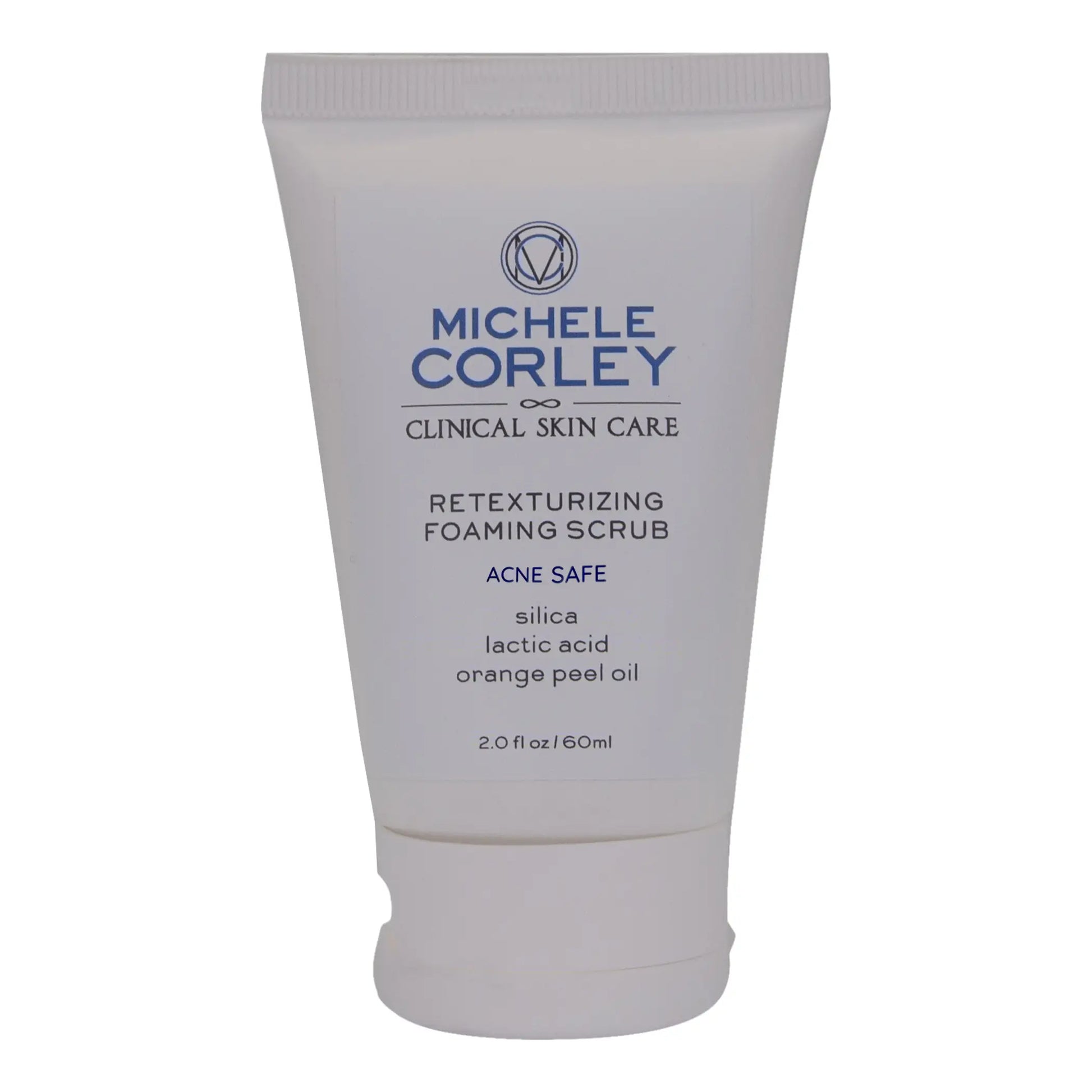 The Michele Corley Retexturizing Foaming Scrub is a gentle yet effective physical exfoliant that smooths skin texture, unclogs pores, and refines tone. Formulated with biodegradable jojoba beads and skin-softening ingredients, it leaves skin feeling polished, refreshed, and ready to better absorb serums and moisturizers.