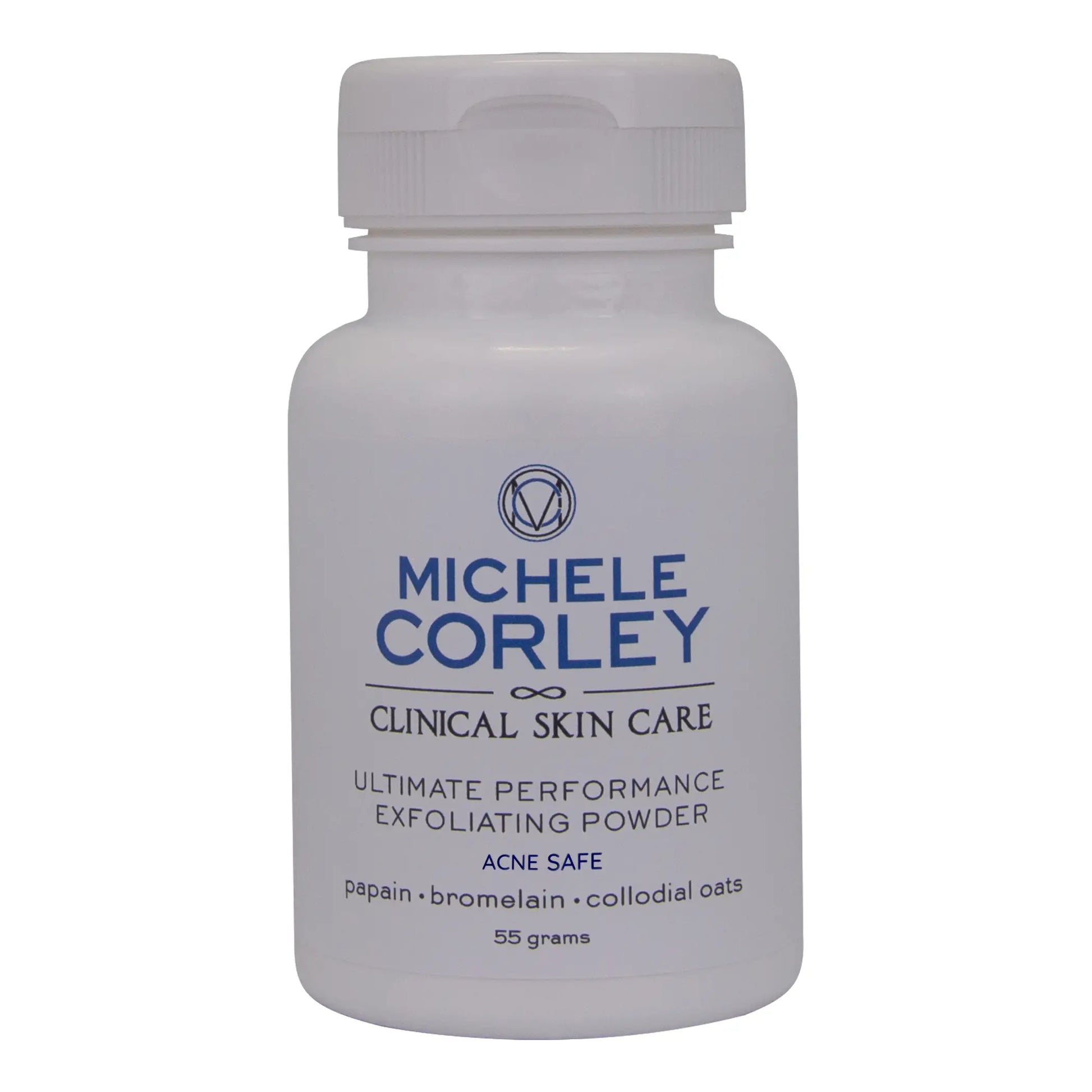 Michele Corley’s Ultimate Performance Exfoliating Powder is a water-activated, gentle exfoliant that instantly smooths and brightens the skin. Made with finely milled rice powder, fruit enzymes, and salicylic acid, this customizable exfoliator removes dead skin buildup, clears pores, and promotes a radiant glow—without irritation.